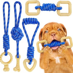 Dog Chew Toys for Aggressive Chewers, Bacon Flavor Durable Dog Teething Chew Toys Bones for Large/Medium/Small Puppies