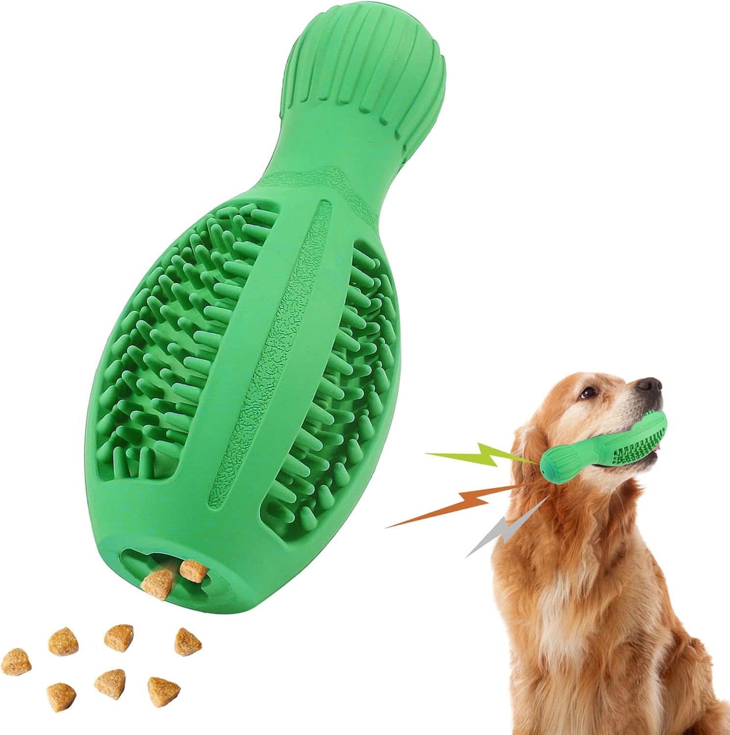 Squeaky Bowling Pin Rubber Dog Chew Toy: Dog Chewing Stick Toy, Treat Dispensing Puzzle for Small Medium Chewers – Perfect Interactive Gift for Teething & Mental Stimulation(Bowling Green)